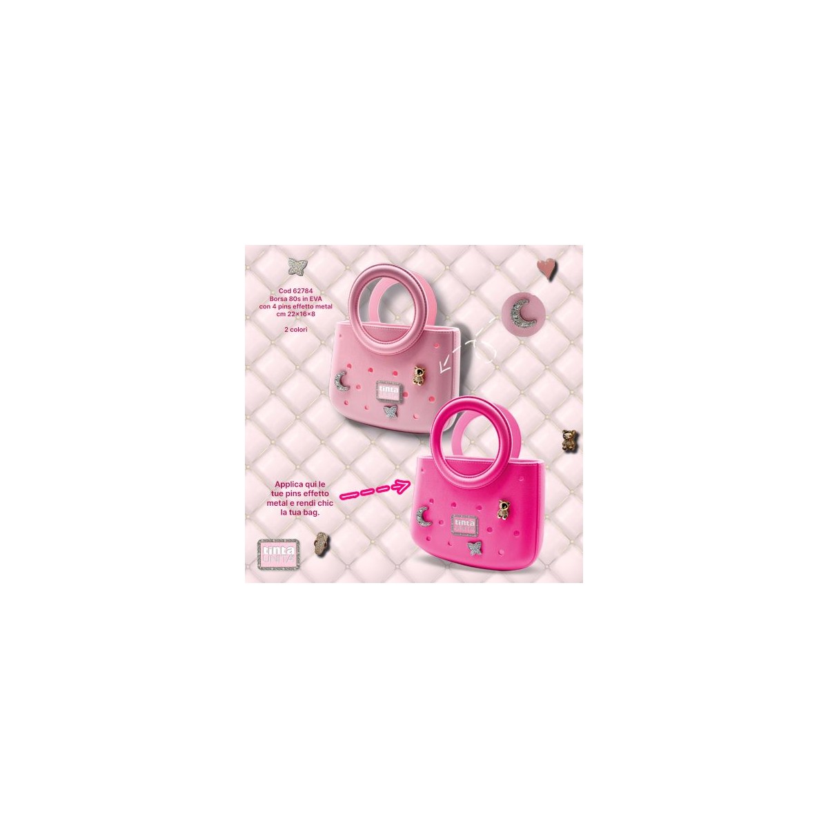 Borsa anni 80 in Eva con 4 pins effetto metal