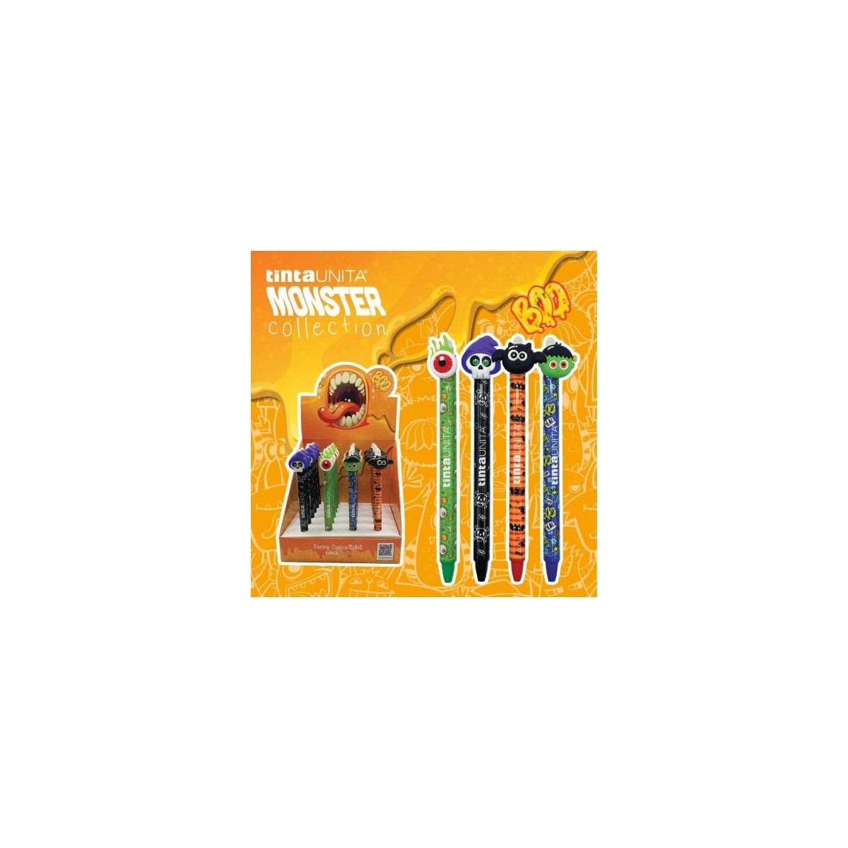 Penna cancellabile Boo mostri modelli assortiti (scheletro, occhio, mostro, pipistrello). Inchiostro blu