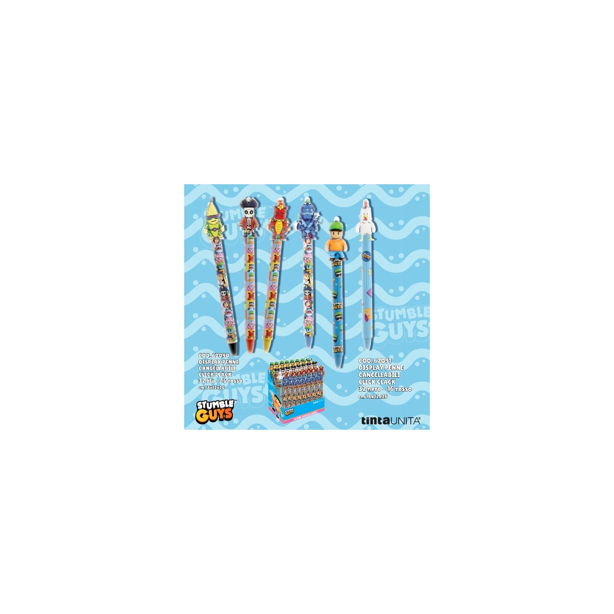 Penna cancellabile click Stumble Guys con topper inchiostro blu modelli assortiti