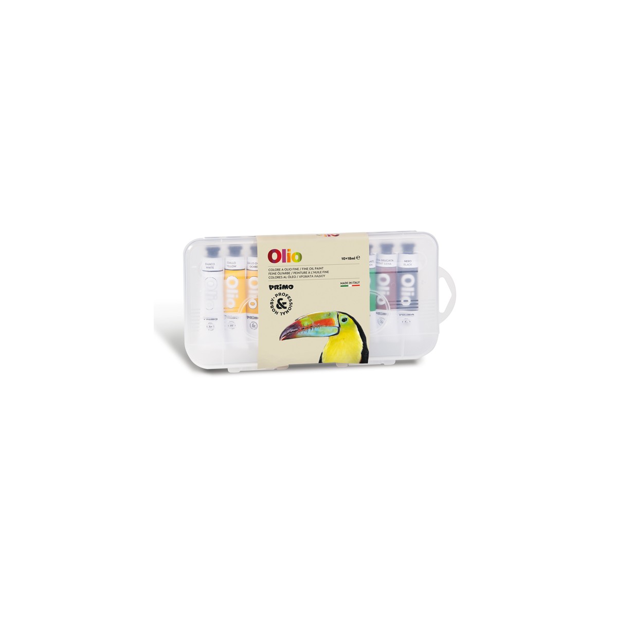 Astuccio in polipropilene trasparente con 10 tubetti in alluminio da 18ml di colore a olio fine