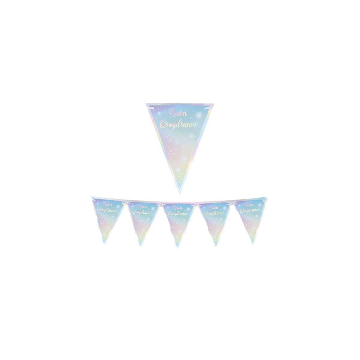 Festone bandiere Buon Compleanno Soft Rainbow in cartone, lunghezza 3mt.