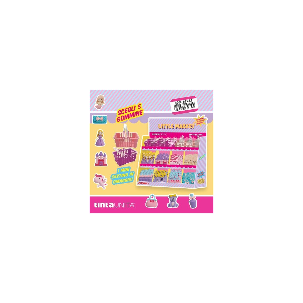 Kit cestino + 5 gommine Fantasy Market Tinta Unita Spring