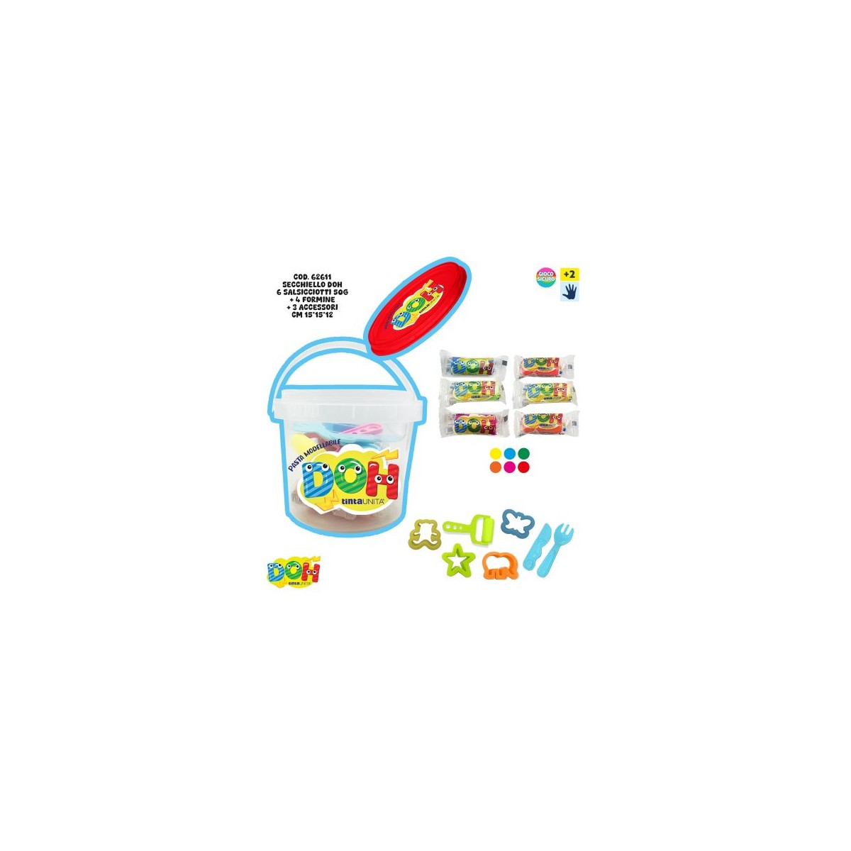 Pasta modellabile Tinta Unita Doh secchiello medio 6 salsicciotti + accessori
