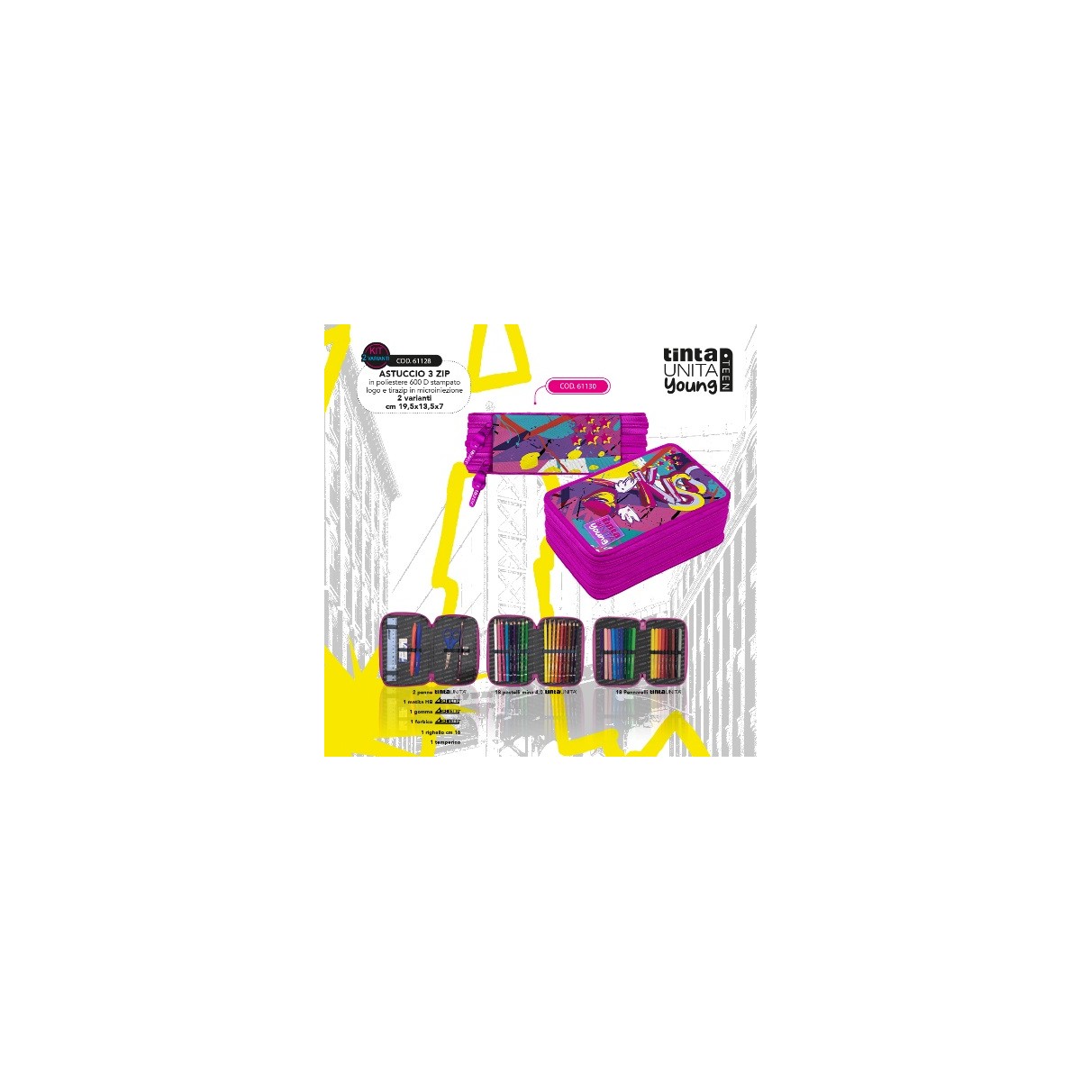 Astuccio 3 zip Kiss cuore con ali Tinta Unita Teen