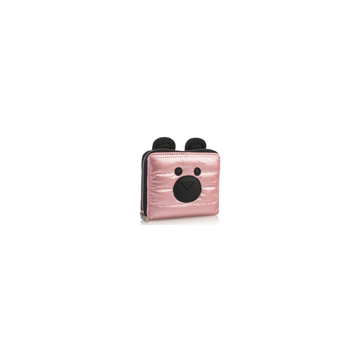 Portafoglio con chiusura a zip. Tasca interna portacarte a fisarmonica. Dettagli orecchie in 3D.