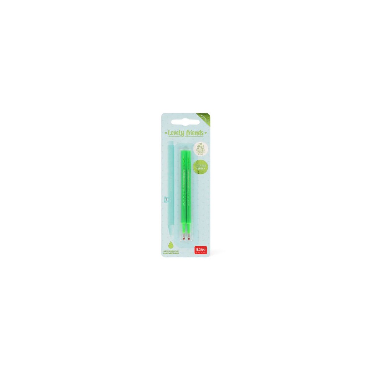Set 2 Refill per penna gel Lovely Friends inchiostro verde neon Legami