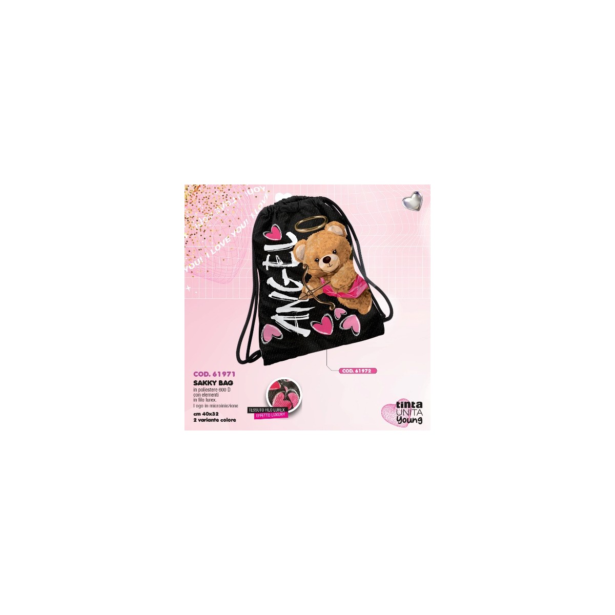 Sacca sakky bag Angel cuori glitter Tinta Unita Young