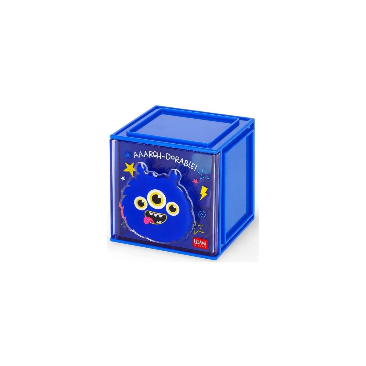 Impila, combina, scombina, rivoluziona! La Box Componibile da Scrivania - Cutie Cube - Monster di Legami aspetta solo di essere abbinata alle altre per creare il perfetto organizer multifunzione da scrivania per la tua cancelleria. Collezionale tutte: più cassetti, più combinazioni!