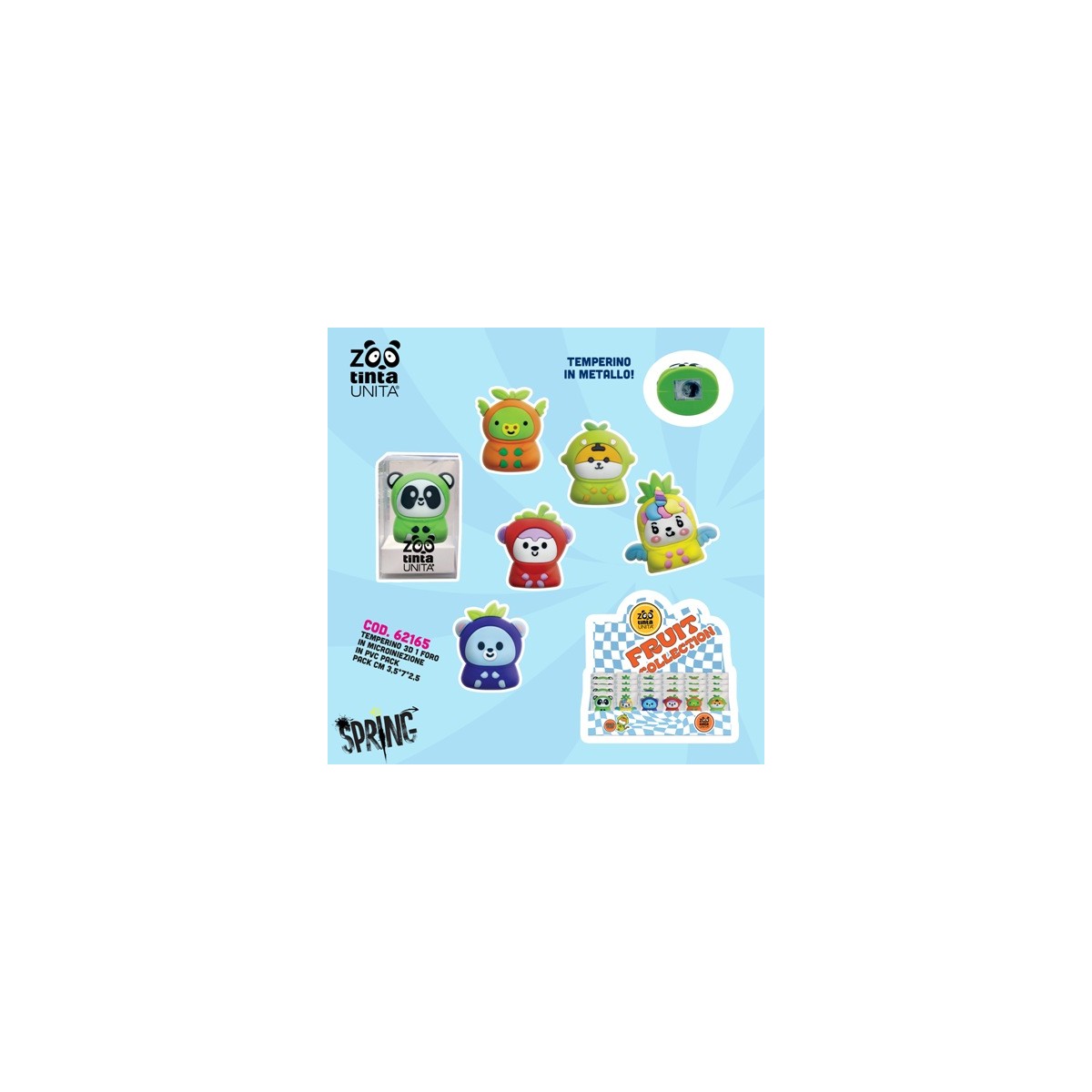 Temperino sagomato 3D 1 foro Fruit Collection Tinta Unita Zoo modelli assortiti