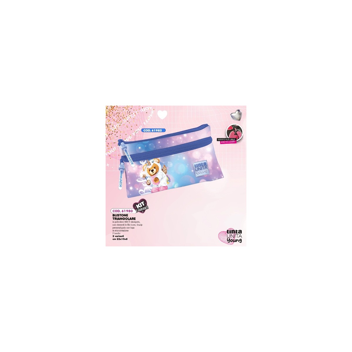 Astuccio Bustone 2 zip triangolare Believe Orso Unicorno Tinta Unita