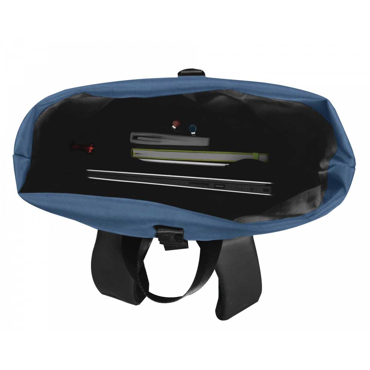 ampia tasca principale (chiusura con gancio rolltop regolabile), tasca frontale di media grandezza (chiusura con zip).